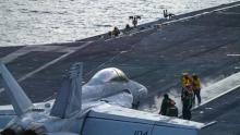 أعلنت القيادة المركزية الأمريكية "سنتكوم"، عن هبوط مقاتلات من طراز F/A-18 Super Hornet، على متن حاملة الطائرات "يو إس إس أبراهام لينكولن" في بحر العرب.