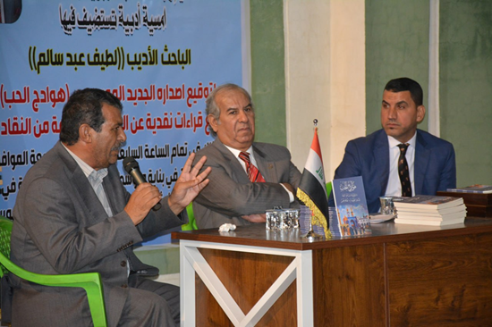 انتقل بعدها مدير الجلسة إلى دعوة الأدباء الذين أسهموا في إعداد دراسات عن كتاب (هوادج الحب)، حيث ارتقى المنصة أولًا الأديب أ. د فلاح حسن، الذي أسهب في البحث عن عنوان الكتاب (هوادج الحب)، والذي نجتزأ منه الآتي: