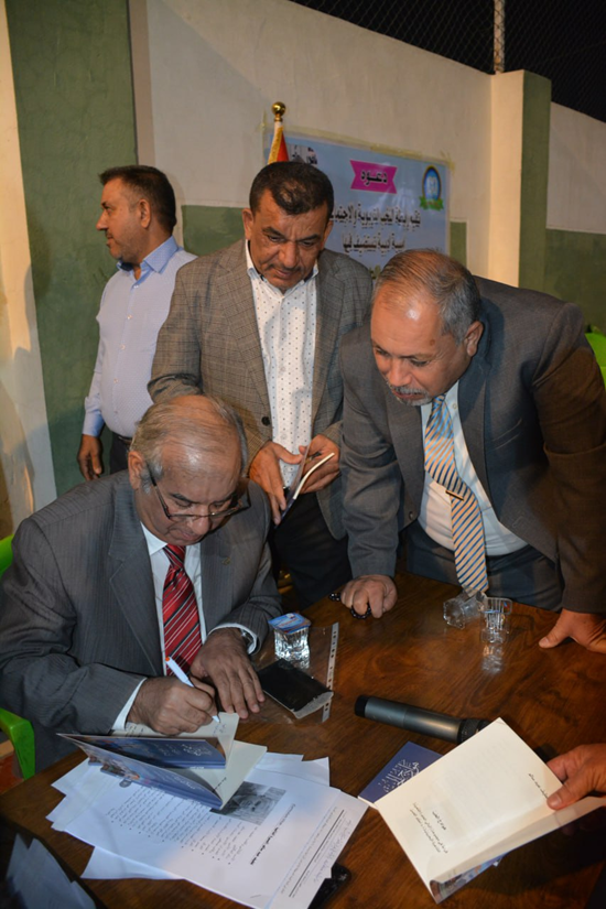 وبهذه المناسبة العزيزة على نفسي، لا يسعني إلا أن أتقدم بجزيل شكري وبالغ تقديري وفائق احترامي إلى الأخ العزيز الأستاذ ماجد هاشم السكيني رئيس رابطة النخب التربوية والاجتماعية، وإلى جميع أخوته الأساتذة الأفاضل (إدارة وهيأة عامة)، وإلى الأستاذ حسين صباح الشمري مؤسس مدرسة أجيال الفراهيدي، وإلى أخوته الأفاضل الذين أسهموا بتأسيسها، وإلى الأساتذة الأفاضل في إدارتها، وإلى الأخ العزيز الأستاذ علي هاشم على حُسن إدارته الجلسة، وإلى الأخ العزيز الأستاذ مهدي السعيدي، وإلى الأخ العزيز الأستاذ حسين الزهيري الذي بذل جهدًا كبيرًا في توثيق مجريات الاحتفالية بطيبةٍ وسلاسةٍ، وإلى العزيز الأستاذ مصطفى ماجد الذي أسهم أيضًا في توثيق هذه الفعالية، وإلى جميع الأخوة الأفاضل الذين حضروا الأمسية، وإلى أخوتي الأدباء الأفاضل الذين شرفوني بحضورهم ومشاركتهم بأوراقٍ نقديةٍ: