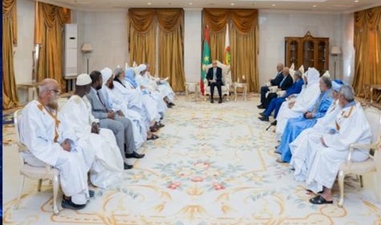 استقبل الرئيس الموريتاني، محمد ولد الشيخ الغزواني، اليوم في القصر الرئاسي بالعاصمة نواكشوط، أعضاء لجنة العلماء الموريتانيين المكلفة بإجراء الحوار مع السجناء السلفيين.