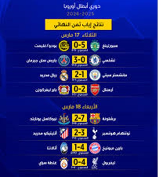 وأسدل الستار على ثمن نهائي دوري أبطال أوروبا 2025-2026، مساء اليوم الأربعاء، باكتمال المتأهلين إلى ربع النهائي.